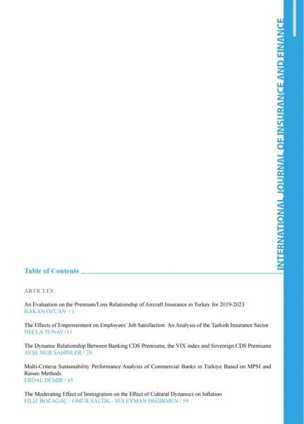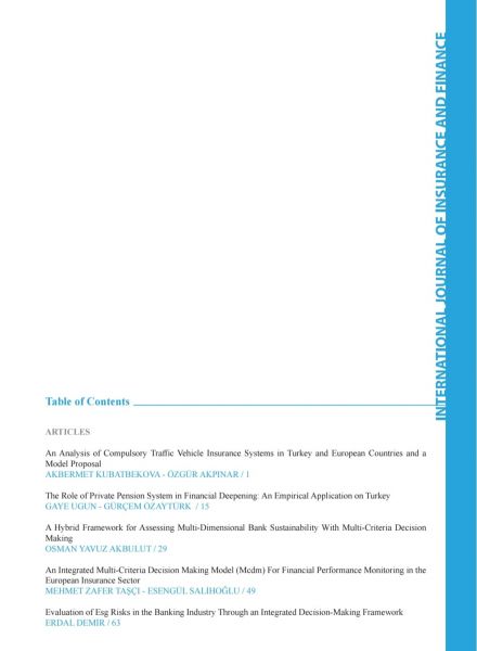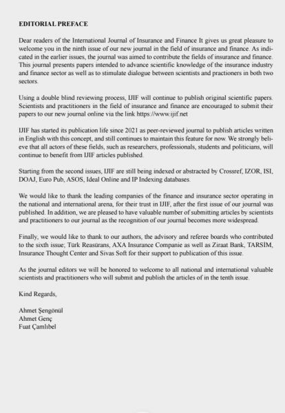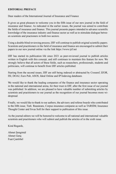 Uluslararası Sigortacılık ve Finans Dergisi | IJIF
